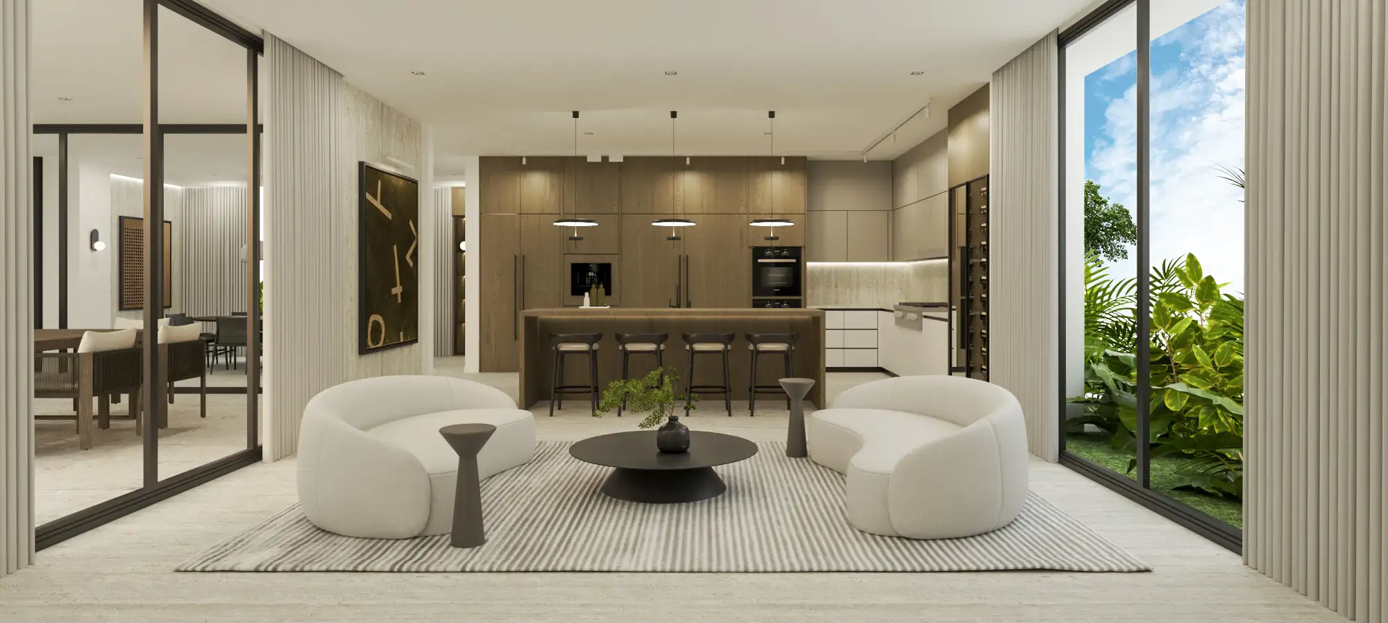 The open layout seamlessly blends the living room with the outdoor lounge, creating an ideal space for year-round indoor-outdoor living. Whether hosting a celebration or enjoying peaceful solitude, this is your perfect oasis