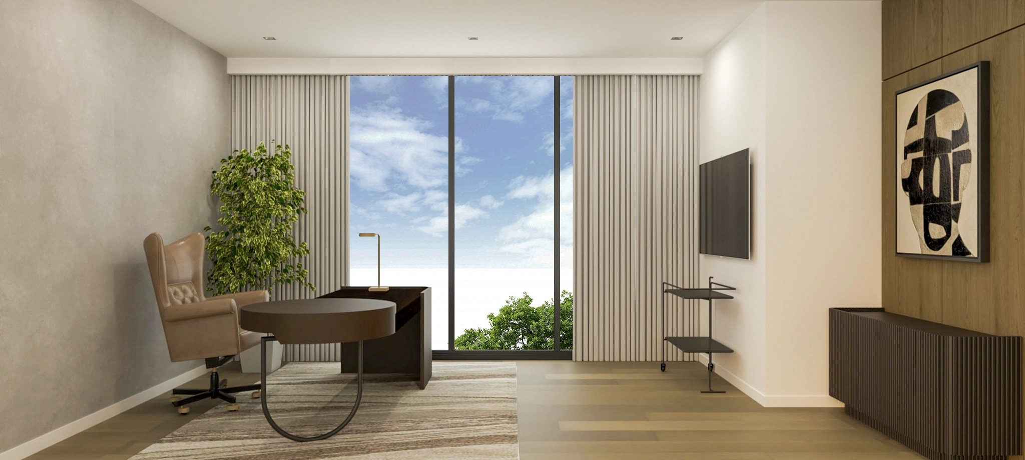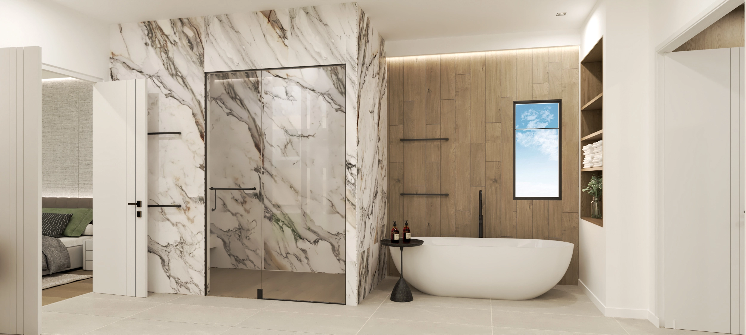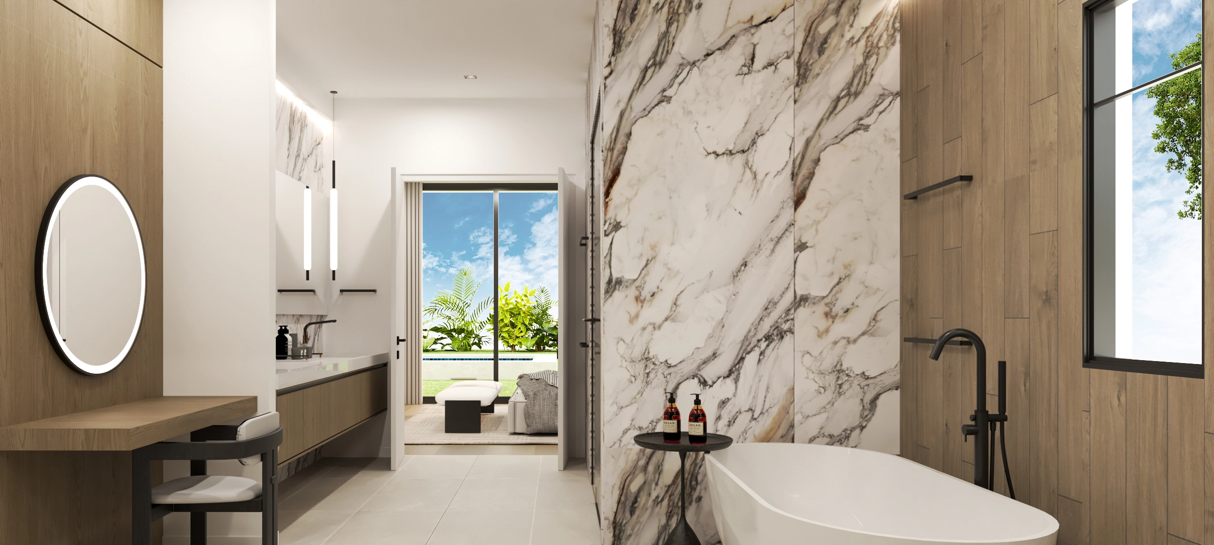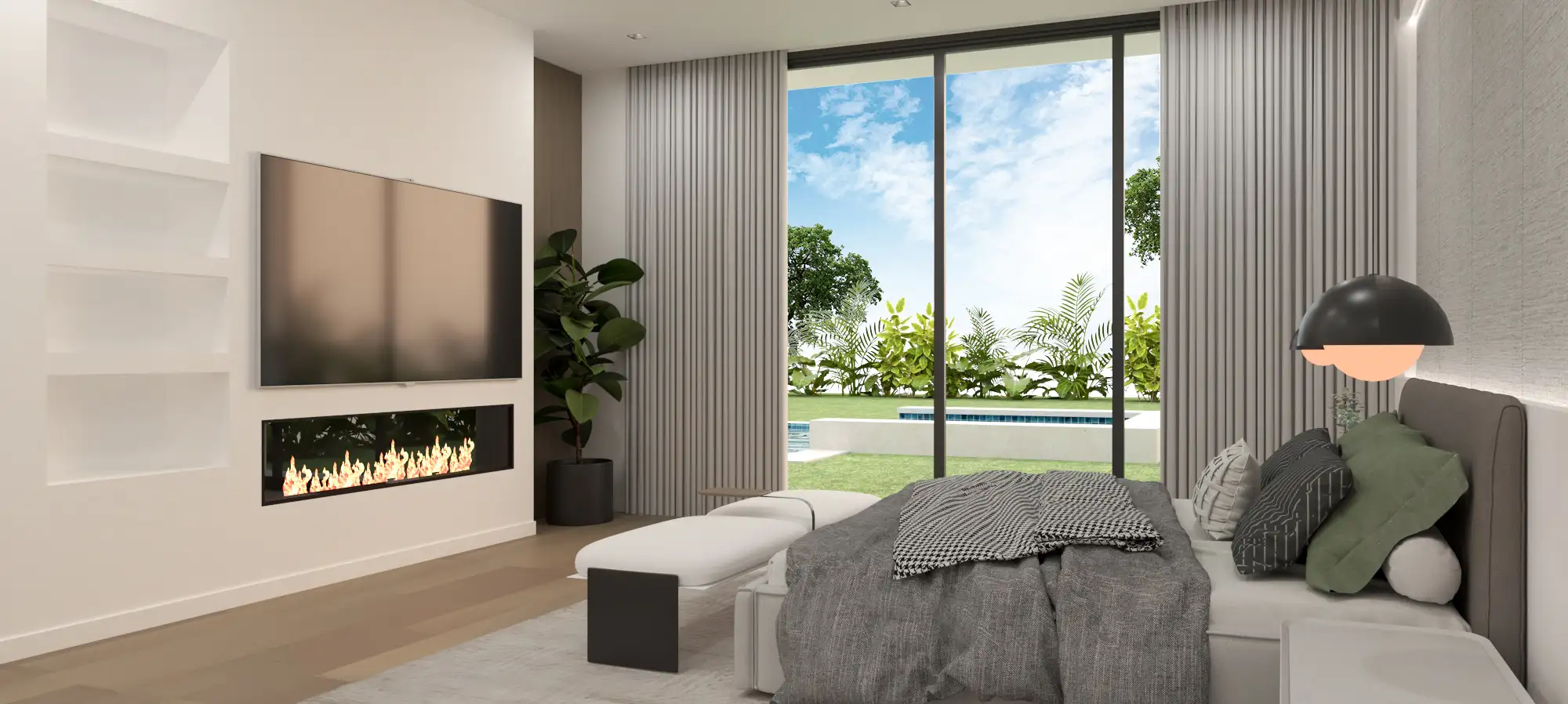 The primary en-suite bedroom is nestled in its own private wing, featuring a spa-inspired bathroom with a soaking tub and plenty of natural light, all with views of the Pool & Spa. Slide open the doors to let in the fresh air or start your day with a relaxing soak in the hot tub for ultimate tranquility.